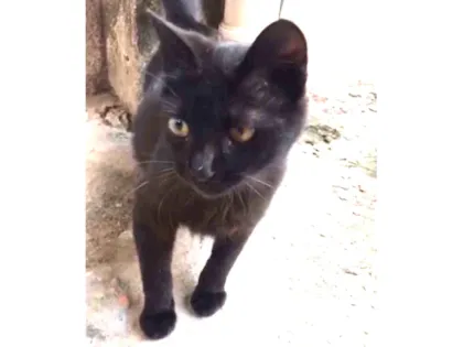 Conheça a Pretinha, uma gatinha fofa de 7 a 11 meses que, prenha e em situação de rua, precisa urgentemente de um lar seguro e amoroso. Adote e faça a diferença!