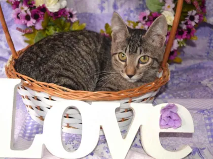 RAJ é um gatinho filhote com pelagem tigrada, macho de 3 meses e meio de idade. Muito amoroso, carinhoso e gosta de colo!!