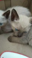 A gatinha provavelmente tem pouco mais de 1 mês , eh bem pequena !!!! Olhos azuis!!!