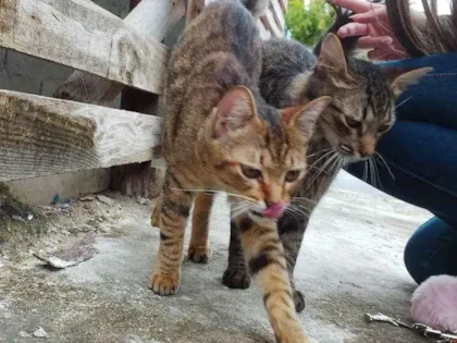 Apareceram dois gatinhos no condomínio onde eu moro, provavelmente foram abandonados, um macho e uma fêmea em torno de 5 a 6 meses, estão com medo, inseguros, mas