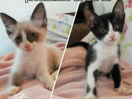 Boa tarde, gostaria de doar 4 gatinhos,3 fêmea e um macho de dois meses completo dia 14 de novembro,comem ração , já tomarão remédio de verme ,são lindas e carinhosa estão precisando de um novo lar .