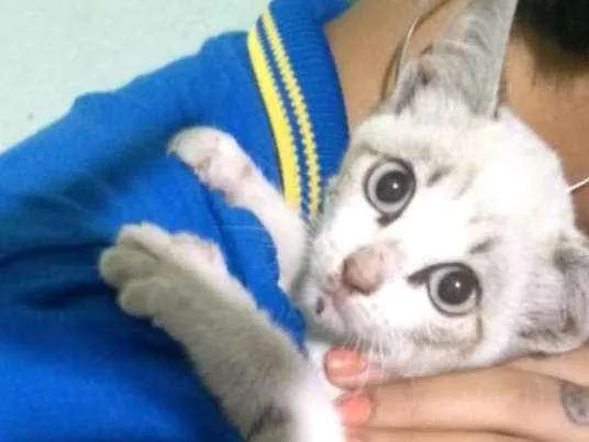 Apareceu um gatinho no quintal de casa muito assustado e nossa cachorra está super agressiva querendo pegar ele. Colocamos para dentro mas não podemos ficar com ele. Não soubemos identificar se é macho ou fêmea.