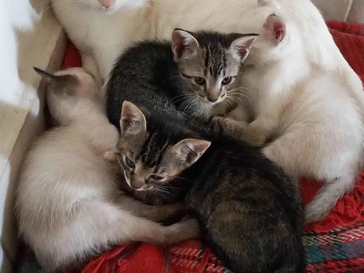 2 siameses e 3 vira latas