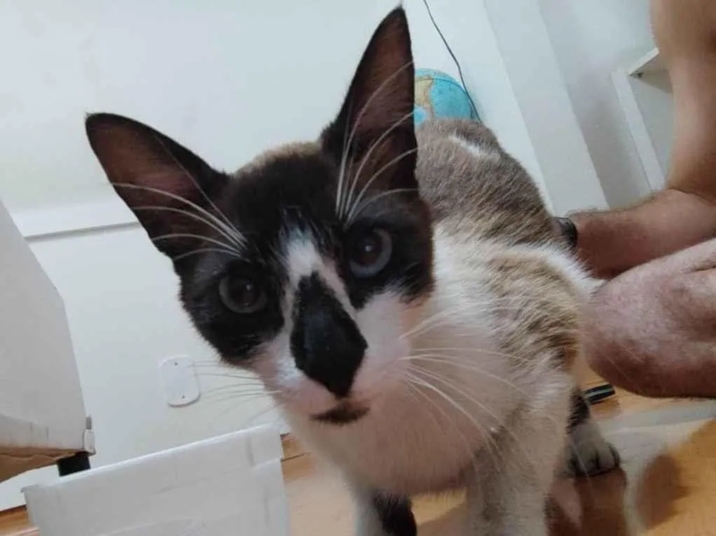 Gato resgatado na Rua Carijós, Santo André. Aparentemente perdido, é manso mas está assustado. Pode ter dono. Ajude a encontrá-lo!