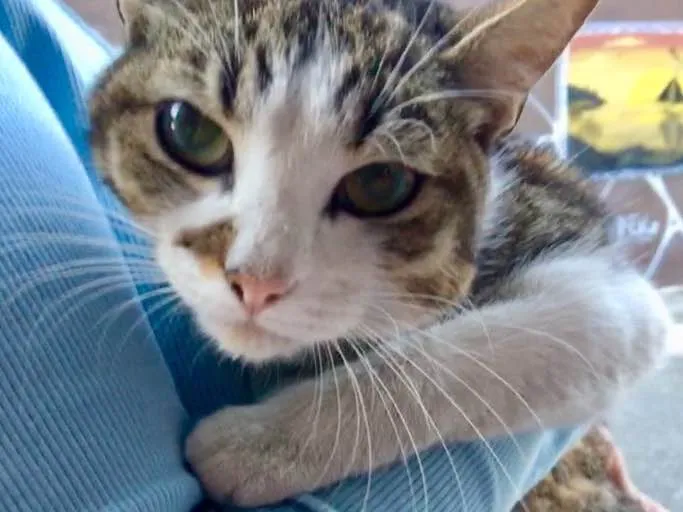 Adote a adorável Não Tem, uma gata fêmea de 1 ano, mansa e carinhosa. Encontrada em Sapopemba, SP, com coleira vermelha. Dê um lar a ela!