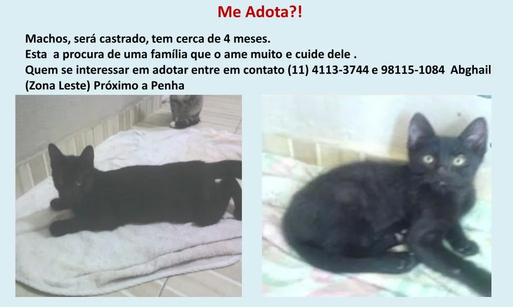 Ver mais pets de Abghail Deaij Carluci Ver todos Cachorros para adoção em São Paulo/SP Ver todos Gatos para adoção em São Paulo/SP