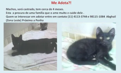 Adote um gato ou gata adorável, ambos SRD de 7 a 11 meses em busca de um lar amoroso. Transforme a vida deles e a sua em São Paulo.