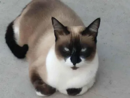 Gata Sialata marrom e branca, olhos azuis, castrada e vacinada, sumiu em 16.12.23 perto do Restaurante Fazendinha, Mogi Mirim. Arisca e mansa.