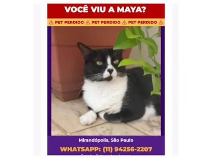 Gata Maya desaparecida em Mirandópolis SP, ajude a encontrá-la