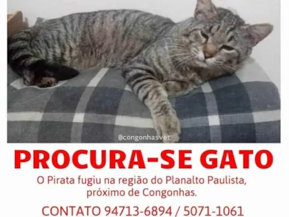 Gato Pirata perdido em São Paulo, rajado e meigo, ajude!