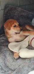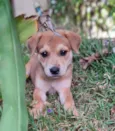 Fêmea, pelo curto, porte medio, aproximadamente 60 dias.