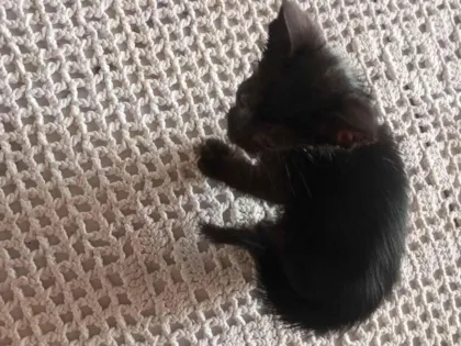 Pretinho é um apelido carinhoso que demos a esse filhote. Resgatamos ele e mais outros gatinhos das ruas, mais não temos condições de mantê-los conosco. Devido a fatores financeiros. Desejo que ele encontre um lar novo, que seja muito feliz e que receba muito amor.
