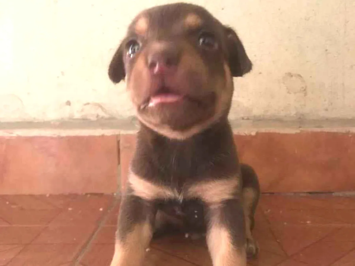 Um filhote marrom de 2 meses.