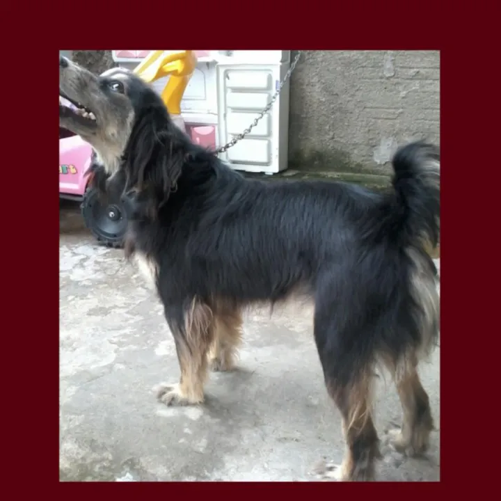 Cachorro porte médio, mistura da *raça cocker com vira-lata*, 1 ano de idade, saudável, tomou todas as vacinas necessárias, é peludo, dócil e atende pelo nome Nicki.
