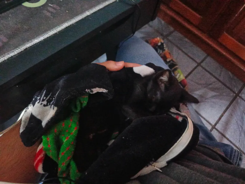 Encontrei o gatinho no dia 30 de junho. Estava fazendo frio, e ele miava muito. Acabei pegando-o por impulso, já que é muito pequeno. No entanto, não posso mantê-lo por muito tempo. Moro em um apartamento pequeno com mais duas pessoas, e uma delas não quer um gato por perto. Posso ajudar com doações mensais para contribuir com os custos do pequeno.