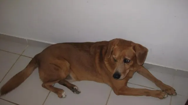 Ele é da cor de (caramelo) e tem uma mancha branca no peito e usava uma coleira antipulgas quando desapareceu. Estamos todos desesperados e sofrendo muito com o sumiço do Boby.