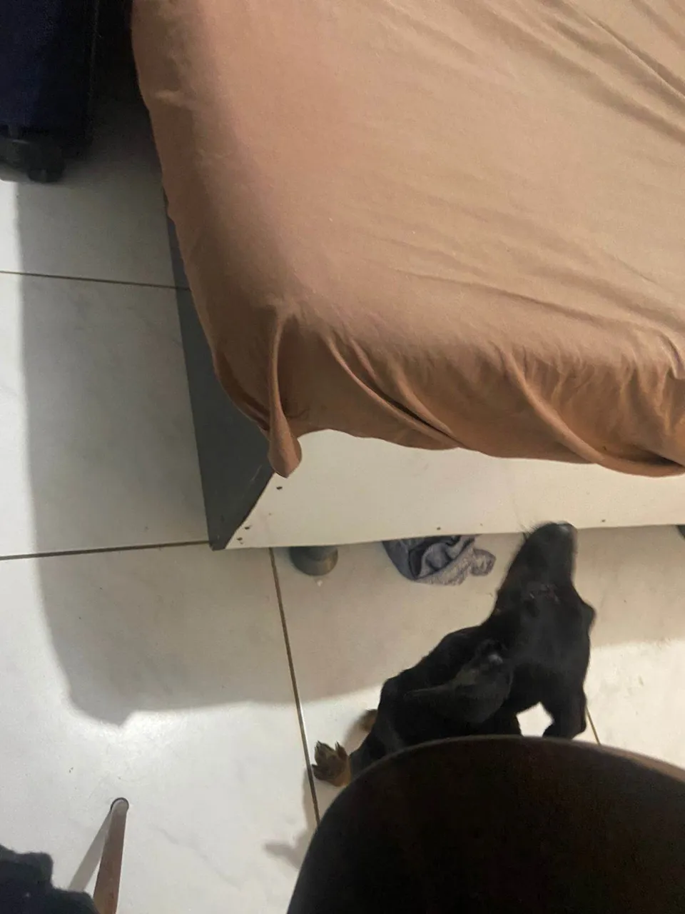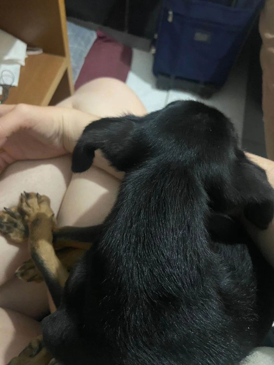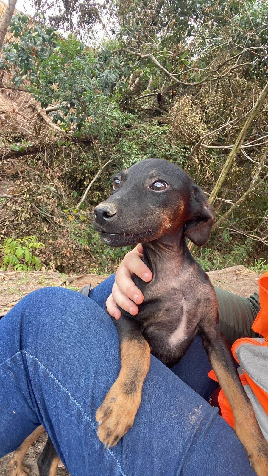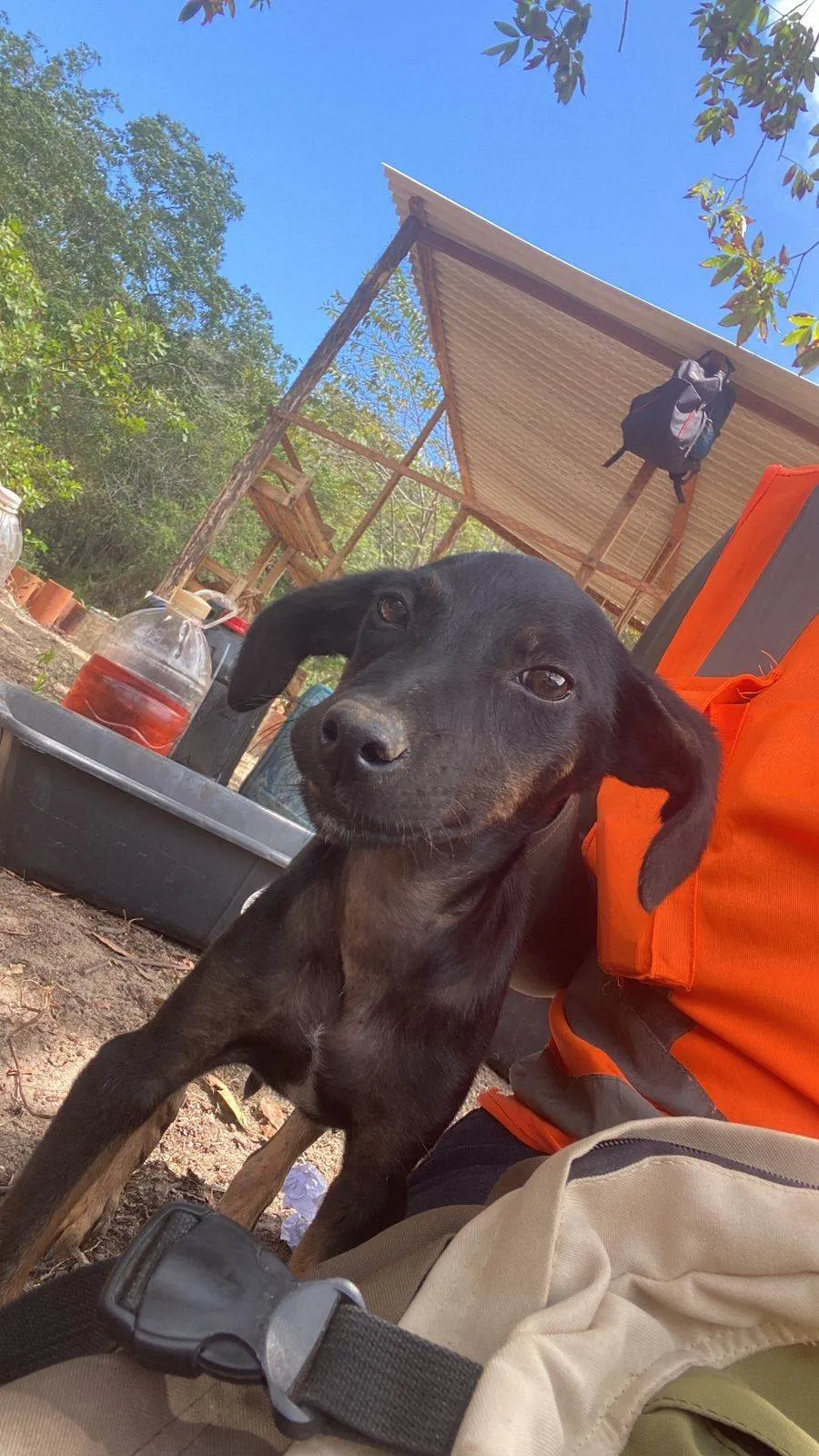 Encontrei o Luiz em meio a uma obra quase sendo atropelado por um trator esteira, e decidi trazer para o lugar onde estou só que o lugar é pago pela empresa e não sabem que estou com um cãozinho e o dono permitiu ele ficar aqui até eu arrumar um lugar para ele, estou tomando alguns cuidados, pois foi abandonado um dia antes de eu encontrar, mas desde já ele é um doce de cachorro, gosta de brincar, de atenção, por ele ele ficava grudado em mim o dia todo, ele parece ser médio porte mas não tenho certeza, ele tem um olhar amoroso com quem cuida e dar amor. Ele tem a cor preta e marrom, se eu pudesse ficaria com ele mas trabalho com arqueologia e sempre viajo, se pudesse pelo menos adotar eu ajudaria com alguns custos.