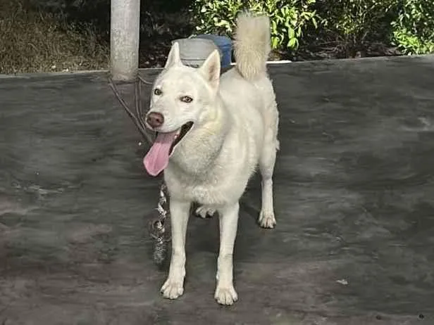 Scoby é um lindo cachorro da raça Husky Siberiano, com pelagem branca e olhos cativantes. Ele tem 3 anos e é de porte médio. Este adorável companheiro é muito brincalhão e sociável, vivendo bem em ambientes com quintal, onde pode correr e brincar à vontade.