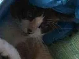 Ele é branquinho com manchas marrom, olho azul e estava com uma coleira azul com bolinhas e um pingente de patinha pendurado. Pelas redondezas de pajuçara/ponta da terra