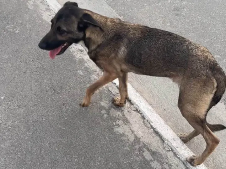 Resgatei um cão num dia de chuva, estava muito magro. Dei ração e abrigo, mas não tenho condições de ficar com ele porque já tenho outro cachorro de grande porte. Ele fica nos seguindo na rua e tenho receio dele ser atropelado. Gostaria muito de arrumar um lar pra ele, pra não ter que colocá-lo na rua de novo. Ele se dá muito bem com crianças. É dócil e protetor.