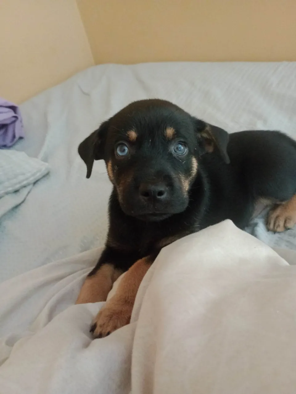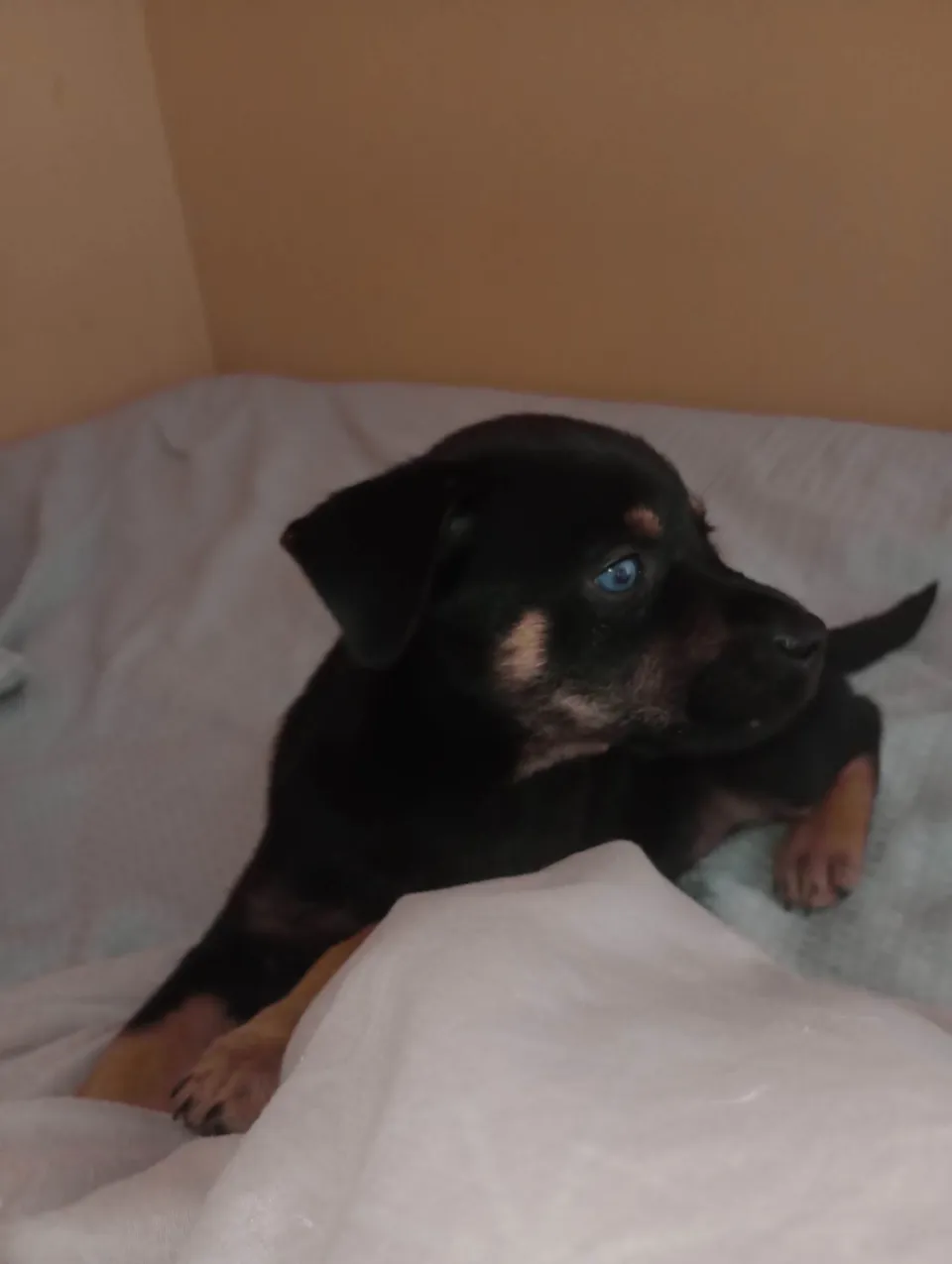 Olá, sua mamãe é misturada ( husky com Chow Chow) e seu papai é salsicha, ela tem apenas 1 mês, muito dócil, carinhosa e está a procura de alguém que a ame, seu olhinho azul é seu charme, se você está a procura de uma nova amiguinha que lhe ame, mande msg