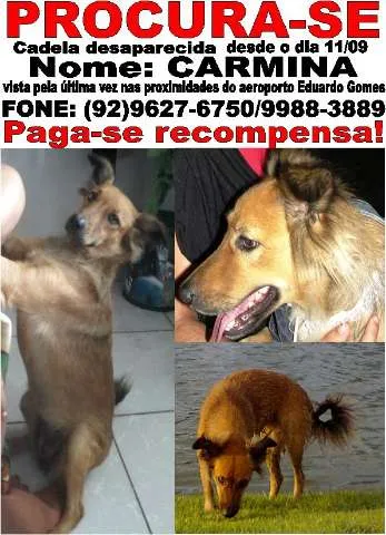 obs: A cadela atende pelo nome de CARMINA. fone para contato: (92) 9988-3889, (92) 9627-6750, (21) 6815-7304