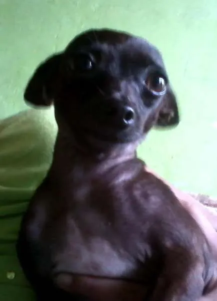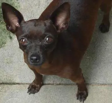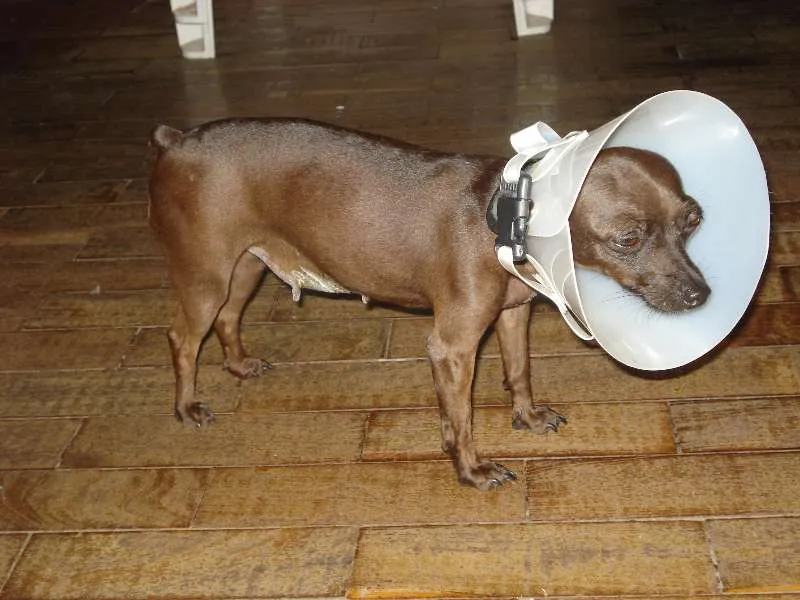 Essa cachorrinha, da raça pinsher micro, Marrom (chocolate) ,bairro cidade nova 1,no dia 7/11/13, estava com peitoral rosa ,ela é castrada e toma remédios .