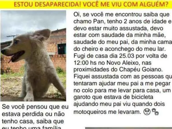 Procura-se Pan,fugiu de casa no dia 25.03, pessoas desconhecidas que ajudavam meu marido a procurá-la disseram ter visto duas pessoas em uma moto a levando.