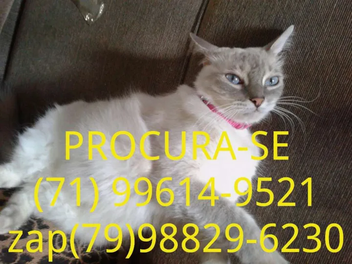 Gata branca olhos azuis peluda gordinha e estava com uma coleira na cor rosa.fugiu na noite do dia 21/02/2016.na Av.eixo urbano central na. 156 bairro Gleba B.