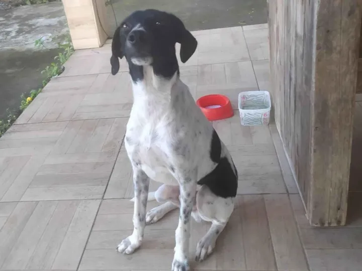 Apareceu aqui em casa e cuidamos. Resolvemos a infestação de carrapatos, vermifugamos. Estamos nos mudando e ele precisa de um novo lar, de preferência um terreno grande para explorar e correr.