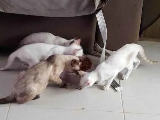 Descrição: Procurando uma adorável companhia felina? Conheça os 5 Irmãos, encantadores gatinhos siameses de pelagem branca, prontos para encontrar um novo lar. Com idades entre 2 e 6 meses, eles são pequenos, mas possuem uma personalidade marcante. Temos três machos e duas fêmeas, todos com temperamento sociável e independente, características típicas da nobre raça siamesa.