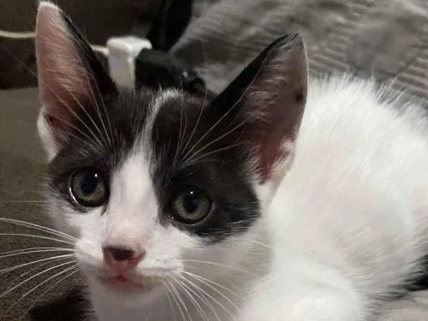Este adorável gatinho de dois meses está à procura de um novo lar! 🐾 Brincalhão e independente, ele adora explorar e descobrir novos desafios. Com seu pelo branco salpicado de preto, ele imediatamente conquista o coração de todos ao seu redor! 💖