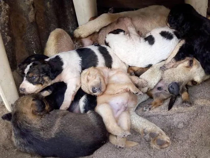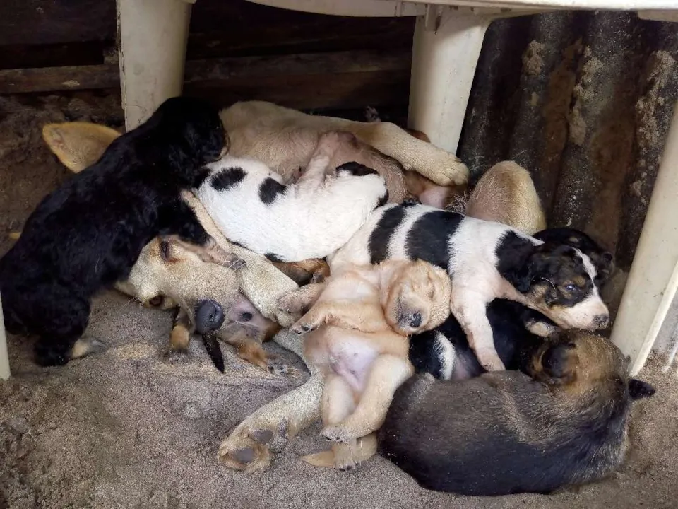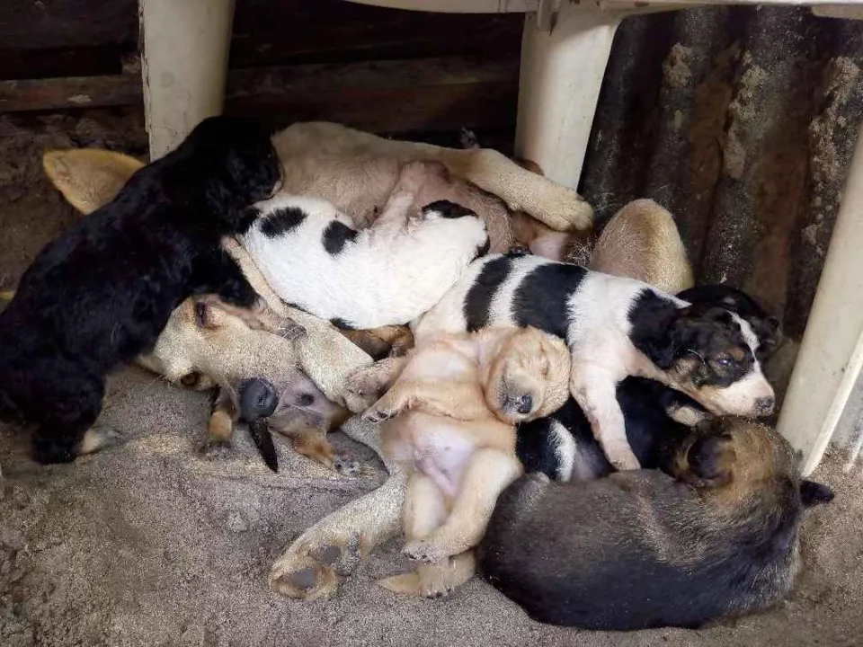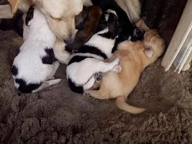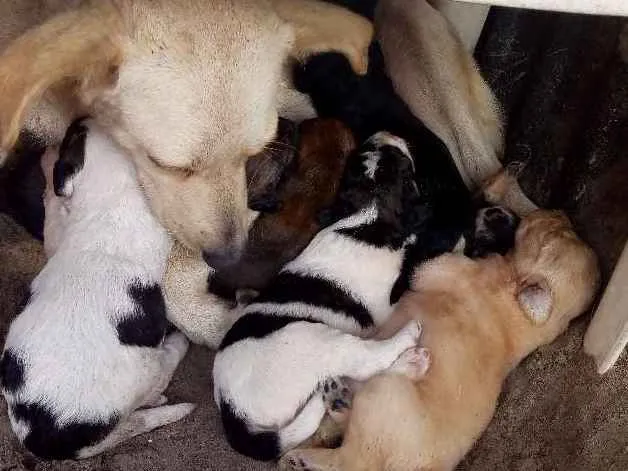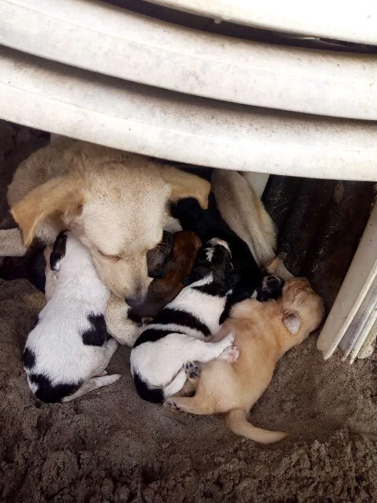 Mãe com 6 filhotes 5 machos e 1 fêmea bebês.20 dias de vida .