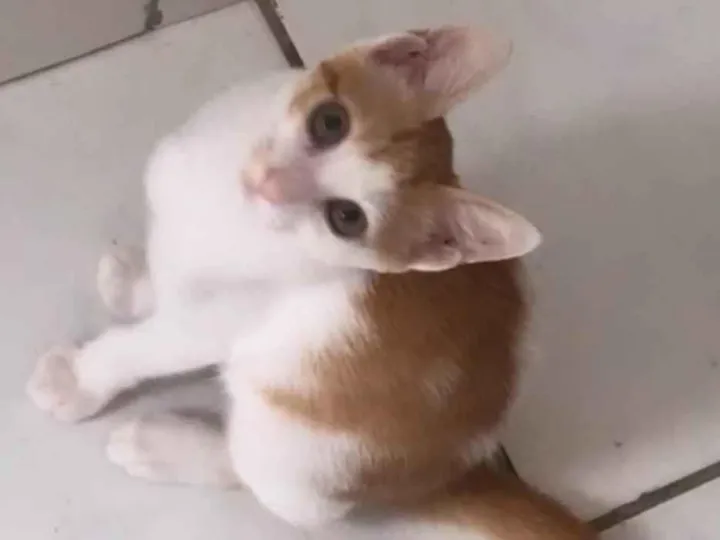 Esse é o Tom, nasceu dia 15 de dezembro, ele tem o pelo branquinho rajado de amarelo. Ele gosta de brincar, é ativo e bem esperto.