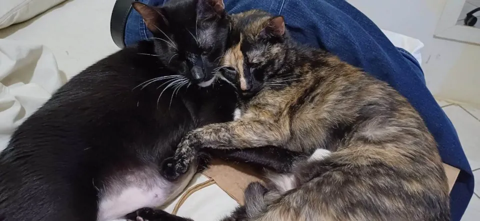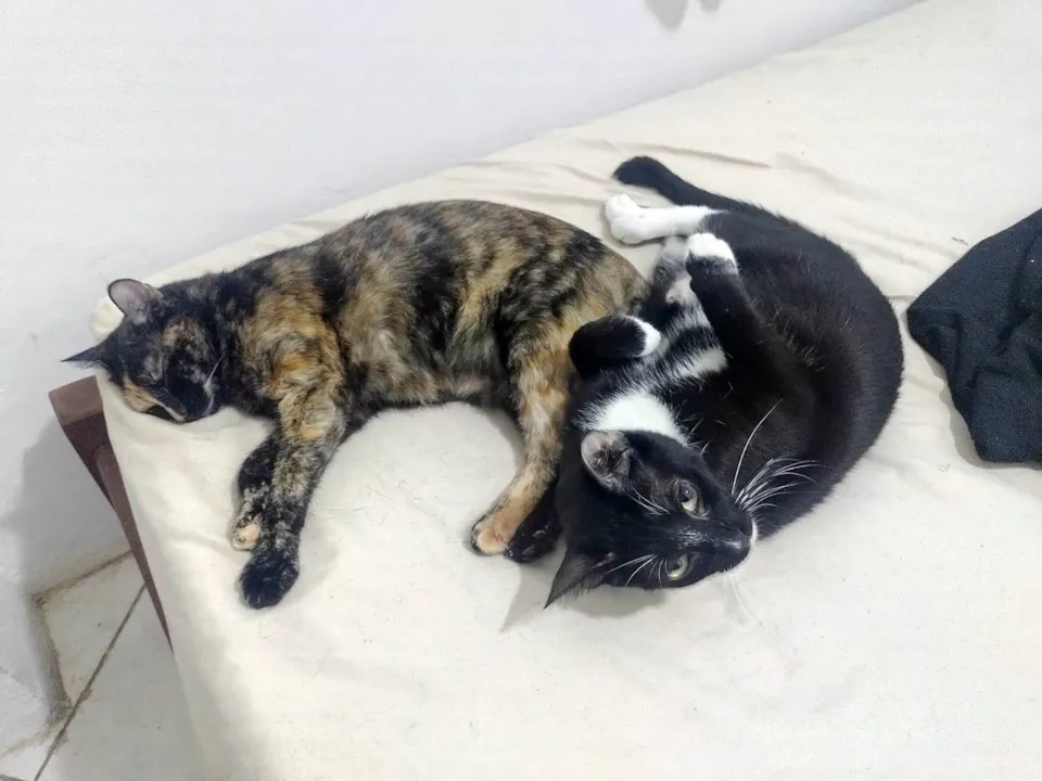 Foram castrados com 1 ano de idade e iniciaram a vacinação com 12 semanas - antirrábica e quíntupla felina (V5), reforço depois de um mês e depois reforços anuais.