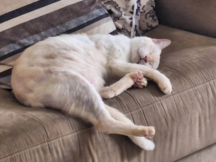 Gato extremamente dócil, carinhoso e amável! Branquinho dos olhos azuis! Doando com dor do coração pois minha esposa é extremamente alergica e está gestante e não posso ficar com ele