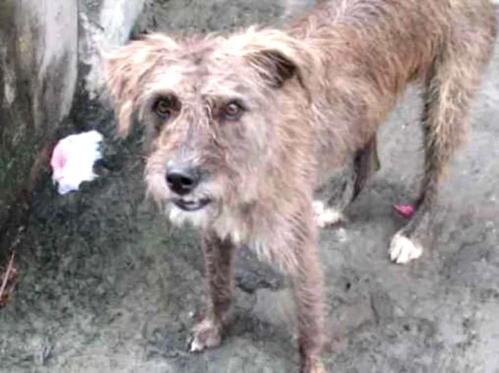 Cachorro dócil e carinhoso,foi abandonado durante a madrugada na rua moro. Tem sido alimentado e recebendo cuidados, porém precisa de um abrigo,pois está sem moradia.