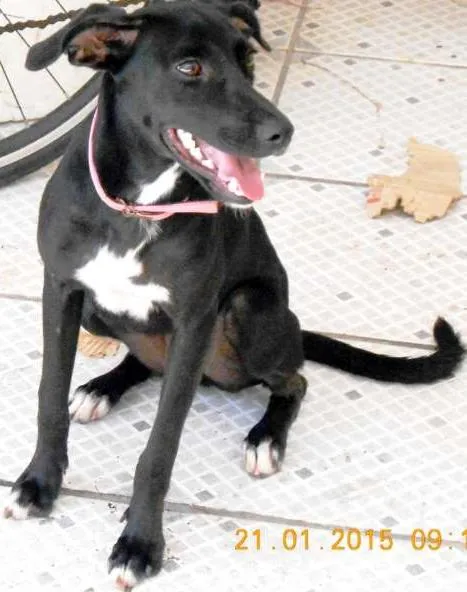 DANDARA tem cerca de 7 ou 8 meses, está castrada, vermifugada, saudável. Convive bem com gatos e outros animais pequenos. Muito dócil, amorosa, excelente companhia e esperta para avisar quem chega ao portão. Como ainda é filhote adora brincar e morder caixas, sacos, pequenos objetos, tudo o que possa parecer um brinquedo. Seu porte é de pequeno a médio. Não deve crescer além do tamanho que está porque chegou há 4 meses e apenas ganhou algum peso.