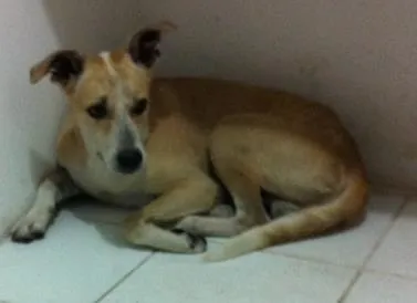Esse cachorro foi abandonado na porta do meu prédio. Ele é bem triste e medroso, provavelmente ele era mau tratado pelo dono.