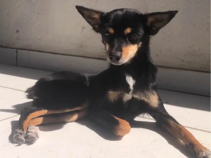 Conheça a Pandora, uma linda cadelinha da raça Pinscher que está à espera de um lar amoroso. Com 4 anos de idade, essa pequena de porte médio é uma verdadeira mistura de cores, possuindo uma pelagem preta e detalhes branca.