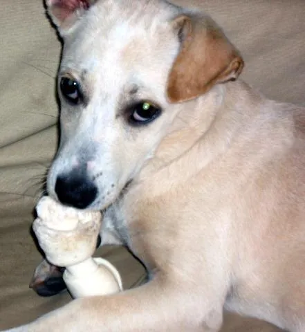 Cadelinha adorável, sem raça definida, cor creme, deverá ter porte médio ou pequeno, muito saudável com um lindo pelo. Com aproximadamente 6 meses, vacinada e castrada. Muito carinhosa e tem energia de sobra. O nome dela é Pérola, gosta de brincar com os gatos e correr com meu lençol para que eu vá buscar. Pérola foi encontrada na rua no dia 15 de Junho e está em nossa casa temporariamente, pois já que temos dois outros cães e dois gatos e o espaço está escasso. No início de agosto vai tirar os pontos e está pronta para um novo lar.