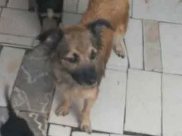 Animal com raça indefinida, aparência de pastor alemão, médio porte. São 3 filhotes fêmeas e 1 casal de adultos.