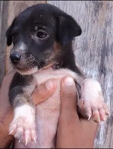 Apareceu aqui na rua uma cachorra, com o tempo ela entrou no cio e emprenhou, teve 7 filhotes, 2 morreram e ficam apenas 5, esse é apenas 1 dos cinco .