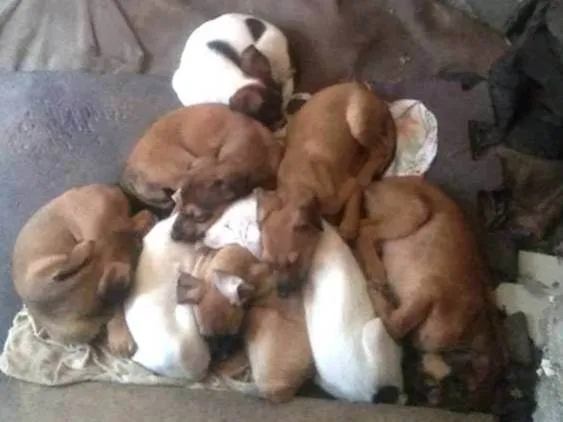 Recolhe uma cadela na rua que estava gravida, ela teve 8 filhotes machos, 5 caramelo e 3 brancos. Infelizmente não tenho condições de cuidar, pois não tenho tempo e nem dinheiro
