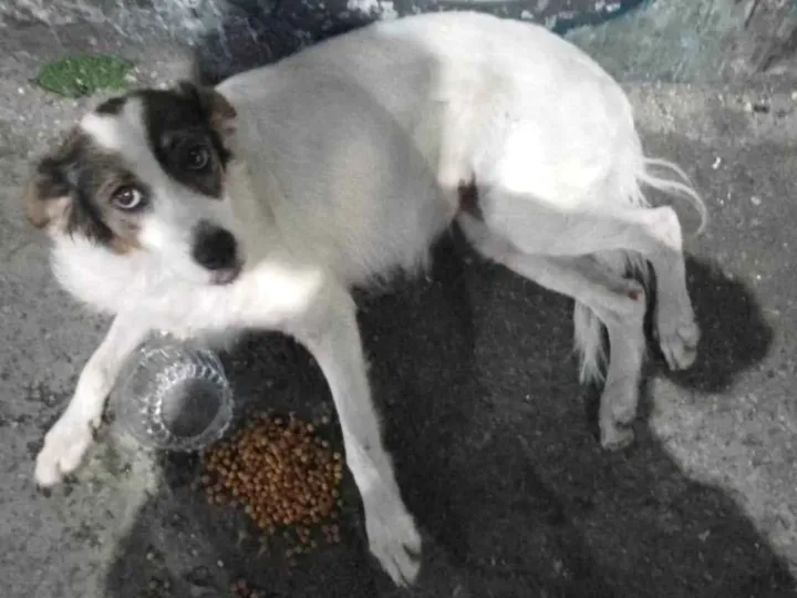Encontramos uma cadela branca, raça não definida, mas parece que foi abandonada, pois não parece que é de rua, hoje as 18;30 horas, no passeio próximo ao condomínio Máximos, Posto de Gasolina e Paroquia Nossa Senhora do Resgate, na curva no passeio ferida, com duas patinhas machucadas. Ela não consegue andar, foi recentemente atropelada e quando chegamos a encontramos muito sedenta e com alguma ração que alguém colocou para ela. Tiramos a foto dela, ela precisa de socorro e ajuda. posso enviar a foto dela por e-mail.