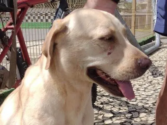 Cachorra dócil pelagem clara muito assustada encontrada na orla da praia de armação em Salvador ontem dia 24 possivelmente fugindo de fogos. Está banhada alimentada mas triste, ela eh muito dócil acostumada a carro e os tutores podem estar a sua procura.. me ajudem a encontrar o dono dessa princesa
