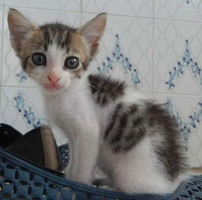 Bluh tem no máximo dois meses. Tem olhos cinzas e os pelinhos brancos e pretos. é muito dócil e comilão. Ama receber carinho e ficar no colinho quando tem alguém vendo tv ou na frente do computados. Foi abandonado na rua à própria sorte com mais três irmãos quando não tinha nem um mês de nascido. Infelizmente um de seus irmão não resistiu e morreu de inanição mesmo sendo socorrido e medicado, pois estava muito fraquinho.Felizmente Bluh e seus irmãos se recuperaram muito bem. Bluh e seus irmãos aguardam por alguém que queira dar amor porque Bluh tranborda amor também.