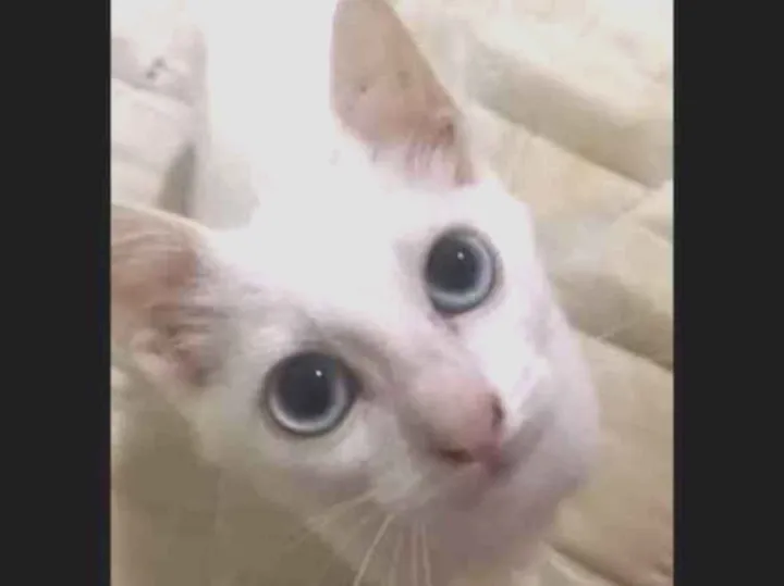 Gatinha fêmea, dos olhos azuis muito linda e Carinhosa. Não posso ficar com ela porque vou embora. Quero que ela tenha uma casa e que ela continue sendo bem cuidada.