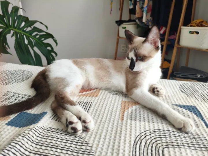 O mingau tem 5 meses, é muito fofo e sempre quer estar perto da gente. Recolhemos da rua quanto tinha uma semana, por isso ele tá muito acostumado com as pessoas.
