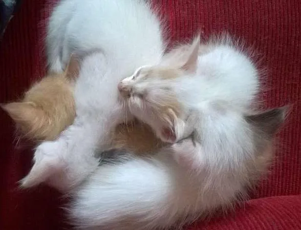 Esses gatinhos são filhotes da minha gata, não vou poder ficar com todos eles então estou doando. Eles são novinhos ainda, têm um mês e sete dias, mas são espertos e gostam de brincar. Eu pretendo doar eles quando eles fizerem dois meses, quem estiver interessado pode avisar.